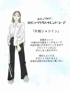 1. 匿名@ガールズちゃんねる 片側インするスタイルは、体型カバー効果がそこまで得られない上に、ただシャツを片方しまい忘れた人にしか見えません。おしゃれな着こなしとして消化できている方は、本当にごく一部。そうした方は片側インをしていると感じさせないような自然なスタイリングができていることが大前提です。 あくまで個人的な意見としては、片側インのコーデを無理やり流行らせようとしているスタイリングのように感じます。 最近、登場した謎のスタイリングのもう一つは、シャツアウトのように「ボディスーツをあえて外に出して着るコーデ」です。 そんなトレンドのボディスーツをアレンジした着こなし方として、クロッチ部分をあえて出して見せるスタイルがSNSを中心に一部で取り入れられています。 本来見えるはずのないクロッチを出すことで個性を表現しているのかもしれませんが、いかんせん「お手洗いから慌てて出てきてしまった人」に見えかねないので、個人的にはおすすめできない着こなしです。 2025/11/15(土) 16:33:42…