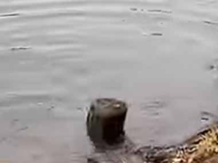 この犬はチャレンジャーだ! 湖の水面から切り株が出ていた → 犬はこうした…