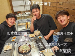 547: ぶーんと飛躍するななC⊂( ●▲●)⊃ 2025/11/15(土) 22:58:52.55 ID:yE0CM2+I0 小園が森下坂本と3人で飯行ってる 552: ぶーんと飛躍するななC⊂( ●▲●)⊃ 2025/11/15(土) 23:02:03.89 ID:lHlYAxmI0 >>547 森下と坂本がカープ入りか ワクワクすっぞ!!! 569: ぶーんと飛躍するななC⊂( ●▲●)⊃ 2025/11/15(土) 23:13:50.81 ID:BlY88ZeL0>>552その発想は無かったww…