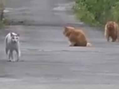 野良ネコたちがこちらに気づいた。待ってました! → 走り方で気持ちが分かります…