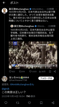 台湾声明 「台湾は独立した主権国家、中国は台湾を統治したことがなく、中国は口出しする権利ない」中国が高市首相に抗議で