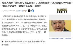 1 : 約2年ぶりに公の場に姿を見せた松本人志。地上波ではなく、有料配信チャンネル「DOWNTOWN+」を舞台に選んだ復帰劇は、かつての「謝罪会見→地上波復帰」という定型から大きく外れている。ネット時代のいま、芸能人が再び立ち上がるルートは変わりつつある。松本人志の選択は、その転換点を象徴している。 (中略) ネット上では賛否両論となり、有料配信の初日となった11月1日には、Xで関連ワードが複数トレンド入りするなど、注目度の高さを見せつけた。 登録者数は、受付開始から20日で50万人を突破したと報じられている。本人はコンテンツ内の生配信で「何十万人の人」が登録したことを明かし、配信前に「高い」「強気の値段設定」などと言われたが「勝ったりましたわ!」と勝利宣言。ライブに集まったファンの喝采を浴びた。 全文はソースをご覧ください 2 : 痛い爺やな 5 : >>2 はいはい引きこもりの負け惜しみ…