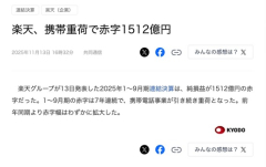1 : 楽天、携帯事業重荷で赤字1512億円 楽天グループが13日発表した2025年1~9月期連結決算は、純損益が1512億円の赤字だった。1~9月期の赤字は7年連続で、携帯電話事業が引き続き重荷となった。前年同期より赤字幅はわずかに拡大した。 5 : そろそろ野球売りそう 7 : なんだかんだ電波良くなってるとか聞くのはホンマ?…
