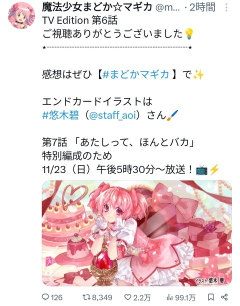 【画像】声優の悠木碧さんがTV Editionまどマギ第6話に描いたエンドカードがあまりにも上手すぎて話題に