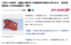 1 : 中国国営メディアによりますと、中国教育省は16日、日本への留学に関する注意喚起を発表しました。 発表の中で教育省は、「最近、日本の治安情勢は不安定で、中国国民を対象とした犯罪事件が多発しており、治安状況と留学環境は良好とは言えず、日本に住む中国国民の安全リスクが高まっている」と主張しました。 そして、「日本に滞在する留学生や近日中に留学を予定している者に対して、現地の治安情勢に最新の注意を払い、リスク評価を強化し、防犯意識を確実に高めるように」と呼びかけました。その上で、「中国国民は、日本への留学計画を慎重に検討することを推奨する」と通知しました。 2 : 日本鬼子さぁ 3 : 渡航禁止にはせんの?…