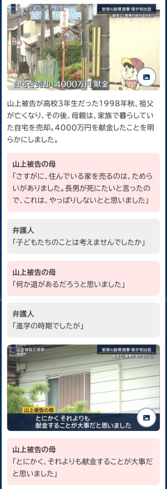山上徹也の母「長男が『死にたい』と言ったので、やっぱり家を売って献金しないとと思いました」