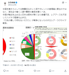 【悲報】ひろゆき「中国を煽る無責任なネット民やタレントに乗せられるな、食糧不足、レアアース不足してハイテク産業も止まるぞ