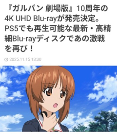 【ガルパン】10年経っても劇場版まだ完結してないのおかしい気がしてくる