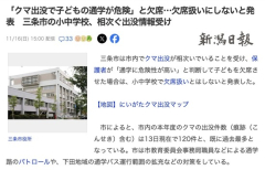 1 : 「クマ出没で子どもの通学が危険」と欠席…欠席扱いにしないと発表 三条市の小中学校、相次ぐ出没情報受け 三条市は市内でクマ出没が相次いでいることを受け、保護者が「通学に危険性が高い」と判断して子どもを欠席させた場合は、小中学校で欠席扱いとはしないと発表した。 市によると、市内の本年度のクマの出没件数(痕跡(こんせき)含む)は13日現在で120件と、既に過去最多となっている。市は市教育委員会事務局職員などによる通学路のパトロールや、下田地域の通学バス運行範囲の拡充などの対策をしている。 これらに加え、保護者が危険性を理由に欠席させた場合も「出席を要しない日」として取り扱うことを決めた。4日に運用を始めており、30日まで続ける。 全文はソースで 2 : 絶対にサボりたいだけのやつが休みそう 4 : 命にはかえられないしね 責任も取りたくないよ…