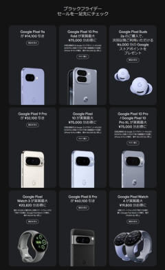 Googleストア、21日からブラックフライデーセール開催 「Pixel 9a」1万4100円引きや「Pixel 9 Pro」3万2100円引きなど