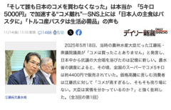 1 : コメ価格が高止まりして誰も買えず、卸業者の倉庫では在庫がだぶついている──衝撃の事実を報じたのはテレ朝NEWSだ。 とはいえ、私たち人間にとって炭水化物は不可欠なエネルギー源。脳や身体を動かすためには絶対に摂取しなければならない。 「消費者はコメの購入を諦め、代わりに麺類を選んでいるとの指摘が相次いでいます。 複数の市場調査会社が『コメ高騰でスーパーではパスタの売上が伸びている』と報告しているのも事実です。日本パスタ協会の発表によると、 パスタの輸入量は今年の1月、対前年同月比で180%を記録しました。7月から9月までの3か月も全て100%を超えています」(同・記者) 2 : うどんやラーメンの売上も伸びており、帝国データバンクは11月、今年1月から10月にかけて「製麺所の倒産件数が過去最少になった」と発表した。 飲食店や家庭でうどん、ラーメン、そばやパスタなど麺類の需要が増え、経営が苦しかった製麺所を救ったのだ。 皮肉なことに、最近の消費者はまさに江藤氏のように「コメは買ったことありません」という日常生活を過ごさざるを得ないのだ。 当時は「コメがない」、「コメが高い」と怒りの投稿で満ちていたXも、すっかり様変わりしてしまった。 6 : バカどもが売り惜しみして値を釣り上げたからな 7 : もう舐め腐りすぎて意味がわからん…