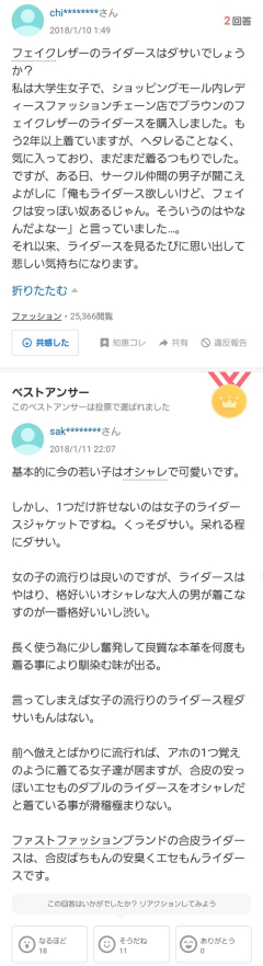 【悲報】女子大生「フェイクレザーのライダースってダサいですか?」ライダースおじさん「…ッッ!!」
