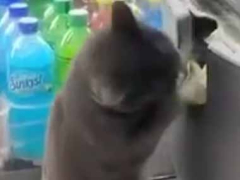 店内のATM(?)で お金を下ろす人間。 バレてにゃい♪ 手慣れた犯行はこんな感じ……