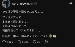 【悲報】スレッズ民「ブックオフのあの『噂』本当だった。社会の仕組み、静かにエグい」