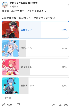 引用元: 296: Vtuberまとめ2025/11/18(火) 16:49:12.30 ぺこら、ホロの入り口ではなかった… 309: Vtuberまとめ2025/11/18(火) 16:49:33.87 >>296 まずい 341: Vtuberまとめ2025/11/18(火) 16:50:44.77 >>296 嫌われすぎだろw 355: Vtuberまとめ2025/11/18(火) 16:51:20.54 >>296 6:4でぺこマリの勝利ぺこ こう言うに決まってるわ 365: Vtuberまとめ2025/11/18(火) 16:51:36.99 >>296 俺もマリンから入ってみこだわ 387: Vtuberまとめ2025/11/18(火) 16:52:40.62 >>296 活動してない今のマリンなんて誰が見るんだよ 399: Vtuberまとめ2025/11/18(火) 16:53:02.15 >>365 マリン配信頻度がな…そりゃ多い人にいくよな 407: Vtuberまとめ2025/11/18(火) 16:53:22.91 >>296 うおw 420: Vtuberまとめ2025/11/18(火) 16:54:04.68 >>387 マリンの切り抜きで入ったよ…