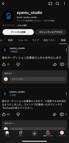 【画像】syamu(41)彼女オーディションを開催するも応募者ゼロ人で中止に・・・