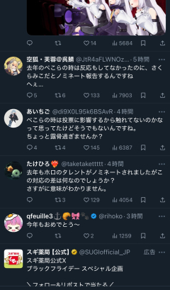 引用元: 148: Vtuberまとめ2025/11/19(水) 01:41:03.00 これマジ? ホロ公式のリプ欄だよなこれ? 328 名前はないないナイアガラよ! 2025/11/18(火) 23:58:23.06 野うさぎこっわ 表で暴れすぎだって…w 175: Vtuberまとめ2025/11/19(水) 01:42:40.61 >>148 普段見ない奴らだからガチのリスナーっぽいなこいつらキモすぎるだろw 178: Vtuberまとめ2025/11/19(水) 01:42:46.66 >>148 ちゃまのファンマ入ってるやついるの草 190: Vtuberまとめ2025/11/19(水) 01:43:10.85 これ>>148 以外でも発狂してる場所あんの? 八つ当たりにも程があるでしょ 201: Vtuberまとめ2025/11/19(水) 01:43:53.15 >>148 な?野うさぎだけ異常だろ 去年ぺこらがノミネートされた時に表で暴れてる35pこんなにいたか? 206: Vtuberまとめ2025/11/19(水) 01:43:58.81 >>148 パーティーギャングw 207: Vtuberまとめ2025/11/19(水) 01:43:59.63 >>190 Yahoo!ニュースのコメ欄 213: Vtuberまとめ2025/11/19(水) 01:44:10.43 >>190 それこそ好き嫌いじゃね 見てないから知らんけど 226: Vtuberまとめ2025/11/19(水) 01:44:47.14 >>148 表にもバレつつあるのか?優遇が 237: Vtuberまとめ2025/11/19(水) 01:45:23.84 >>226 野うさぎがヤバすぎるっていうのはバレ始めてるな 238: Vtuberまとめ2025/11/19(水) 01:45:25.58 >>148 去年みこより同接下のぺこらがノミネートされても暴れる奴は誰もいなかったのにな 245: Vtuberまとめ2025/11/19(水) 01:45:41.64 >>148 野兎気色悪いな 4ね 271: Vtuberまとめ2025/11/19(水) 01:47:14.82 >>238 普通思うことがあっても口には出さなかったり裏ではグチグチ言ってても表ではいい顔するのがリスナーなんだけどなこいつらにはマジで常識が通用しないわ 281: Vtuberまとめ2025/11/19(水) 01:47:42.98 >>148 こんなに野うさぎが暴れてるのは去年ぺこらが受賞を目標にしたいって言ってたからね 再ノミネートどころか怨敵サクラミコが入り込んできて正気を保てなくなってしまった…