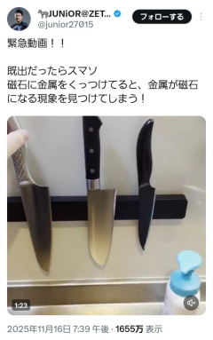 【朗報】プロゲーマーさん世紀の大発見をしてしまう、金属を磁石にくっつけていると金属も磁力を持つようになる模様