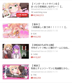 引用元: 2400: Vtuberまとめ (ワッチョイW 818f-plXf) 2025/11/19(水) 23:16:24.70 ID:ArqjnQdO ねね強いね 2409: Vtuberまとめ (ワッチョイ bbd7-jtzP) 2025/11/19(水) 23:16:53.32 ID:pIdAIMgI >>2400 300万!? 2424: Vtuberまとめ (ワッチョイ 4181-z0bk) 2025/11/19(水) 23:17:37.03 ID:rEPoXPQD >>2400 これ毎日やったら年収10億 2431: Vtuberまとめ (ワッチョイ e665-F50X) 2025/11/19(水) 23:17:54.99 ID:mUypRyrr >>2400 見てた時で335人分だったのに300万いってないんだな 2433: Vtuberまとめ (ワッチョイW 91f9-kIau) 2025/11/19(水) 23:18:08.19 ID:o9xgupz4 >>2424 どこまで稼げるかやってみて欲しいな 2434: Vtuberまとめ (ワッチョイW 8d6d-CSgU) 2025/11/19(水) 23:18:15.81 ID:iF1f984a >>2400 3年ぶりだし、多少はね? 2435: Vtuberまとめ (ワッチョイW bc5f-Szfu) 2025/11/19(水) 23:18:19.00 ID:zsoJJQdS >>2400 まつりもそうだが武器持ってる人は強いな 2451: Vtuberまとめ (ワッチョイ 4181-z0bk) 2025/11/19(水) 23:18:56.22 ID:rEPoXPQD >>2435 ねねちの武器なに? 2454: Vtuberまとめ (ワッチョイW 8d6d-CSgU) 2025/11/19(水) 23:19:07.54 ID:iF1f984a >>2431 335人の段階で締め切ったんやで 2456: Vtuberまとめ (ワッチョイ 12c5-ciYa) 2025/11/19(水) 23:19:13.91 ID:6o2qNauC >>2431 海外通貨は赤スパでもね アルゼンチンのやつとか赤でも1000とかやろ 2459: Vtuberまとめ (ワッチョイW 6a22-IdfH) 2025/11/19(水) 23:19:21.02 ID:Xww45aps >>2451 かわいさ 2469: Vtuberまとめ (ワッチョイW 498e-gZV0) 2025/11/19(水) 23:19:44.38 ID:Ses7uhNH >>2454 ねねち今日全員分やるの?…