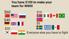 スレッド「第三次世界大戦のおけるチーム分け、お前らが獲得するのはどこ?」より。引用:4chan(海外の反応)1万国アノニマスさん 第三次世界大戦のおけるチーム分け、お前らが獲得するのはどこ?条件:100ドルで第三次大戦のチームを結成、味方以外の国と戦わなくてはいけなない60ドル:中国・アメリカ・ロシア40ドル:ドイツ・イギリス・フランス20ドル:韓国・ポーランド・インド10ドル:北朝鮮・イタリア・カナダ・ブラジル・ノルウェー5ドル:スウェーデン・ギリシャ・メキシコ2万国アノニマスさんアメリカ&ドイツでいかせてもらう3万国アノニマスさん アメリカ+ドイツ=100ドル=世界を支配余裕じゃないか↑ 万国アノニマスさん ドイツは世界大戦全敗だぞ…