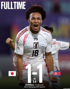 1: 久太郎 ★ 2025/11/19(水) 02:28:35.28 ID:3uayBSOi9 (*゚∀゚)っ このまとめのまとめ U-17日本代表がPK戦の末に北朝鮮を破り6大会ぶりのベスト8進出。試合内容では北朝鮮が優勢との声も多く、フィジカル差や年齢疑惑が議論に。日本は苦戦しつつもGKの活躍と冷静なPKで勝利を掴んだ。…