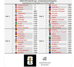 308: 名無しさん@恐縮です 2025/11/20(木) 10:21:56.79 ID:3TXTe9Kp0プレーオフ枠はポット4だから、グループリーグの一番下にイタリアがくる可能性もあるのかこれはきついな315: 名無しさん@恐縮です 2025/11/20(木) 10:26:23.08 ID:23Tt06AC0>>308だよなぁポットの確定ラインのチームとイタリア、ノルウェーで死の組が量産される…