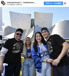 1: それでも動く名無し 2025/11/15(土) 19:51:47.59 ID:EtSvzvoT0 打者として55本塁打、投手として防御率2.87大谷夫妻とフリーマン夫妻のショット(画像はチェルシーさんのインスタグラムのスクリーンショット) 米大リーグ・ドジャースの大谷翔平投手は13日(日本時間14日)、全米野球記者協会の投票で選出されるナ・リーグの最優秀選手賞(MVP)を満票で受賞した。3年連続は2001~2004年のバリー・ボンズ以来2人目で、4度はボンズの7度に次ぐ歴代単独2位となった。ド軍の選手だけでなく、主砲の妻からも祝福が贈られた。【動画】新たな大谷夫妻の写真も…フリーマン夫妻との1枚も話題になったスライドショー 主砲フリーマンの妻チェルシーさんは自身のインスタグラムを更新。文面に「MVP」と記し、ブルーのハートととトロフィーの絵文字を添えた投稿。公開された画像では、夫とともに大谷夫妻も写真に納まり、4人で笑顔を浮かべている。3日(日本時間4日)にロサンゼルスで行われたワールドシリーズ連覇を祝うパレード中の一幕だった。 球団専属カメラマンのジョン・スーフー氏も自身のインスタグラムで公開していた画像。フリーマンも自身のインスタグラムのスクリーンショットで同様の画像を引用し、「おめでとう、ショウヘイ」と祝福していた。フリーマン夫妻は、大谷だけでなく、真美子さんも祝福する形で投稿したようだ。…
