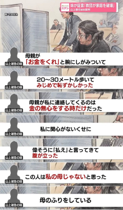 【速報】山上妹「統一教会に家庭を壊された、法の下では解決不能だった、母親が連絡してくるのは金の無心をするときだけ」
