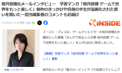 1: 2025/11/19(水) 10:09:23.16 ID:e50GmG+o0 ◆「ゲーム制作者側を知ることで得られるものも」 ――本書でご自身の半生が学習マンガとして描かれることになった経緯と、オファーを受けた際の率直なお気持ちをお聞かせください 桜井政博氏(以下、桜井):私はこれでも、控えめに目立たず生きていきたいと思っています。「ホント?」 とか疑わないで……。作品やものごとを伝えることには全力で取り組みますが、自分自身を売ったり出したりするのは控えたい性格です。ネットのおもちゃにされるのもご免ですね。なので、私自身に対するインタビュー依頼などは結構高頻度で断っています。作り手など関係なく、ゲームだけ遊んでくれたらそれが一番だと考えています。 なので、最初に学習マンガのお話を受けた時は一度お断りしました。本業も忙しい最中でしたし……いざやるとなんだかんだで大変ですから。1年半以上前の話です。 しかしその後、担当者大角さんの熱意に押され、まずは少し様子を見ようかと考えた次第です。そのうち構成があがり、ネームをやりとりして完成に至りました。…