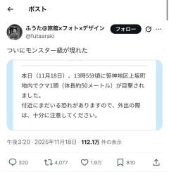 引用元: それでも動く名無し 2025/11/19(水) 09:10:02.48 ID:ktuKx+Ot0 逃げるにしても通り過ぎるだけで8秒かかる模様 2: それでも動く名無し 2025/11/19(水) 09:10:35.22 ID:ktuKx+Ot0 猟友会たすけて… 3: それでも動く名無し 2025/11/19(水) 09:11:21.81 ID:qKVyRwpz0 その日、人類は思い出した…