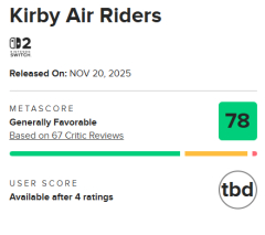 1: 2025/11/19(水) 23:38:14.31 ID:KcBTljtc0 黄金期 マリギャラ 97 ゼルダブレワイ 97 スマブラSP 93 暗黒時代 ポケモンZA 78 ゼルダ無双 78 エアライダー 78 どうしたのよ任天堂…