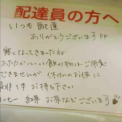 1: 2025/11/21(金) 05:01:01.02 配達員が気遣いに感動「涙いいっすか」 客からの “差し入れとメッセージ”に大反響「日本人も捨てたもんじゃない」「裏がありそうで怖い」 自分 涙いいっすか pic.twitter.com/OpHlY9Q95c— しょうたん꙳ ⋆ 🚬🐺 (@ST98_ARM) November 10, 2025 ※関連記事 【画像】女さん「Amazon配達員、頭おかしいのかな?置き配拒否してるのにこのザマ(笑)」→配達員ブチ切れ大炎上…