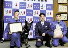 「犬の散歩に出かけたが、犬だけ帰ってきた」行方不明の高齢者、真夜中に数分で発見…敏ワン警察犬に感謝状