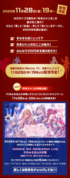 引用元: 830: Vtuberまとめ2025/11/21(金) 15:03:08.20 兎田ぺこら👯♀ホロライブ3期生 @usadapekora (2025/11/21 15:00:01) 本日発売の『#年末ジャンボ宝くじ』×ホロライブのコラボ開催決定‼ 11月28日(金)には三期生でコラボ記念配信をやるぺこ🥳 ✅配信に向けてアンケートも大募集 「年末ジャンボ宝くじ」PR配信用アンケートアンケート締め切り:11月24日(月・祝)23時59分まで このアンケートは11月28日(金)に予定されている宝鐘マリン・不知火フレア・白銀ノエル・兎田ぺこらの「年末ジャンボ宝くじ」の配信内で紹介いたします 配信を一緒に盛り上げるべく是非ご...docs.google.com 年末ジャンボ…今年最後の大勝負ぺこ🌟 本日発売の『#年末ジャンボ宝くじ』×ホロライブのコラボ開催決定‼11月28日(金)には三期生でコラボ記念配信をやるぺこ🥳 ✅配信に向けてアンケートも大募集 年末ジャンボ…今年最後の大勝負ぺこ🌟 ↓キャンペーンサイト↓ #3期生ジャンボ — 兎田ぺこら👯♀️ホロライブ3期生 (@usadapekora) November 21, 2025 842: Vtuberまとめ2025/11/21(金) 15:03:51.34 >>830 あ 850: Vtuberまとめ2025/11/21(金) 15:04:04.57 >>830 なんかきた 859: Vtuberまとめ2025/11/21(金) 15:04:11.23 >>830 すげぇな 865: Vtuberまとめ2025/11/21(金) 15:04:28.44 >>830 本当に同じ奴としかコラボしないな 869: Vtuberまとめ2025/11/21(金) 15:04:35.97 >>830 うおおおお 871: Vtuberまとめ2025/11/21(金) 15:04:42.26 >>830 これ凄くね? 874: Vtuberまとめ2025/11/21(金) 15:04:50.54 >>830 3期ほんま覇権やな 888: Vtuberまとめ2025/11/21(金) 15:05:31.89 >>830 ふーん 896: Vtuberまとめ2025/11/21(金) 15:05:44.80 >>830 3期生案件か… マジでソロ案件なくなってきたな… 899: Vtuberまとめ2025/11/21(金) 15:05:53.97 >>830 優遇きた 910: Vtuberまとめ2025/11/21(金) 15:06:22.55 >>874 フブポルで前やってたな 918: Vtuberまとめ2025/11/21(金) 15:06:42.72 >>830 黄金世代 920: Vtuberまとめ2025/11/21(金) 15:06:48.75 >>830 なあ言っていいかな? はあちゃまが言ってた優遇されてるグループってさあ 928: Vtuberまとめ2025/11/21(金) 15:07:09.86 >>830 配信はマリンのチャンネルで草 先方にももうバレてんのよ 931: Vtuberまとめ2025/11/21(金) 15:07:16.50 >>830 幸運兎どりゃあああああ 935: Vtuberまとめ2025/11/21(金) 15:07:21.63 >>920 うおwうおwうおw 938: Vtuberまとめ2025/11/21(金) 15:07:26.54 >>920 一部のホームラン級基地外以外はみんなそう思ってるぞ 945: Vtuberまとめ2025/11/21(金) 15:07:59.03 >>928 チケットと抱合せしないといけないほど売れてないのかよw 953: Vtuberまとめ2025/11/21(金) 15:08:29.22 >>928 やっぱり皆マリンのバーターなんだ… 956: Vtuberまとめ2025/11/21(金) 15:08:46.95 >>928 うおwww 961: Vtuberまとめ2025/11/21(金) 15:09:13.29 >>928 28日19時拘束でこよりの周年配信に被せられないの草 963: Vtuberまとめ2025/11/21(金) 15:09:16.43 >>920 お前消されない? 965: Vtuberまとめ2025/11/21(金) 15:09:18.97 >>945 エスコンのキャンペーン思い出したわwww 972: Vtuberまとめ2025/11/21(金) 15:09:39.35 >>961 ぺこらならそのあとすぐ枠取るだろ 981: Vtuberまとめ2025/11/21(金) 15:10:08.12 >>961 あいつなら20時5分からでも被せるぞ 983: Vtuberまとめ2025/11/21(金) 15:10:12.71 >>928 ヤラセはやばいしね…