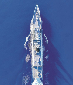 中国人民解放軍南部戦区の海軍艦隊所属の054A型フリゲート「巴彦淖尔」と「通遼」が、海上戦闘訓練で波間を駆ける。引用元:…