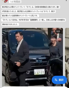 【画像】高市早苗さん、車のナンバー「37-77」が中国人に見つかる!(盧溝橋事件は1937年7月7日)