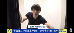 4: ななしさん@発達中 2024/04/22(月) 14:10:06.22 ID:jKZsZqoD0 30と言われても納得 【1食20秒】「食事の時間は無駄」、"完全食"だけで6年間暮らす男性ドリンクタイプの完全食とプロテインを混ぜたものを1日2回摂取。「準備、食べる、食べた後集中できなくて眠くなる、を3回も繰り返さなきゃいけないっていうのが非常に効率が悪いなって思って」と説明する。 pic.twitter.com/MsmJjAwmOJ— ライブドアニュース (@livedoornews) April 21, 2024 30→35歳でほとんど老けてないように見えるところからもヴィーガンよりも健康的なのかもしれませんね。 pic.twitter.com/kMUW7yqYDa— けい♂(moonspell_jp) (@moonspell_jp) April 21, 2024 COMP Powder TB Plain (v.7.0 4,000kcal 960g 1袋) 完全食 プロテイン プレーン たんぱく質 必須アミノ酸 必須脂肪酸 食物繊維 ビタミン ミネラル ポリフェノールAmazon.co.jpで詳細を見る Huel(ヒュエル)パウダー 1.62kg 完全栄養食 エンドウ豆プロテイン使用 低GI 食物繊維 国内正規品 Amazon.co.jpで詳細を見る…