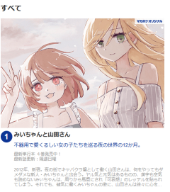 1: 2025/11/22(土) 23:06:12.43 2週間くらい更新してないはずなのにずっと閲覧ランキング上位 普通は当日更新漫画が占めるのに ※関連記事 【画像】みぃちゃん作者「公営ギャンブルやってる底辺のオッサンも動物には優しい」…