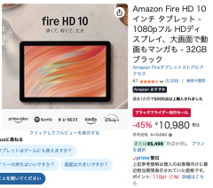 AmazonのFire HD 10 タブレット 45%引き←これ