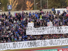 ◆J2◆ヴァンフォーレ甲府サポによる日本一短いクラブ批判弾幕爆誕!「は?」🤔