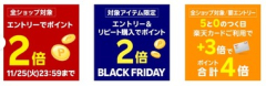 楽天市場ブラックフライデー、全ショップポイント2倍&リピート購入でポイント2倍を開始