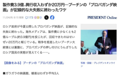 1 : 製作費3.9億→興行収入わずか20万円…プーチンの「プロパガンダ映画」が記録的な大失敗に終わったワケ(プレジデントオンライン) - Yahoo!ニュース ロシア政府が今夏公開したプロパガンダ映画が、記録的な失敗に終わった。海外メディアは、製作費に少なくとも2億ルーブル(約3.9億円)を投じたが、回収できたのはせいぜい20万円と報じている。戦争を推進したいプーチン大統領とは裏腹に、プロパガンダの押し付けにうんざりしたロシア国民の実態が見えてくる――。全文はソースで 2 : 草 3 : さすがに桁数間違えてるのかと思ったらそのままやったわ……