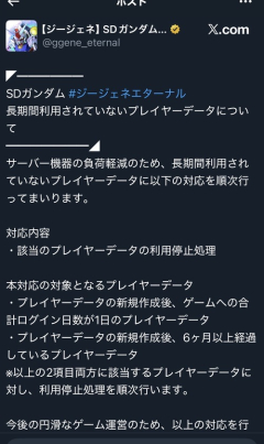 1: 2025/11/26(水) 08:46:48.85 ジージェネ」6ヵ月起動無しのプレイヤーデータを停止 ※関連記事 【画像】この漫画の「ダメ人間」と付き合っている彼女の話、少し怖くて草wwwww…