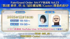 【FGO】『Fate/Grand Order カルデア放送局 Vol.23「第2部 終章_序」&「冠位戴冠戦:Caster」開幕直前SP』が2025年12月1日(月)19時に配信決定