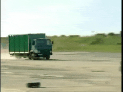 【GIF】大型トラックが全速力でポールにぶつかる瞬間がヤバすぎるw