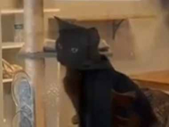 猫カフェで掃除をしていた。窓ガラスにスプレーしてフキフキ♪ → 猫、手伝います…