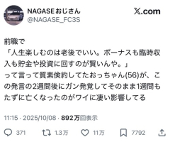 【悲報】投資おじさん「人生楽しむのは老後でいい」→2週間後に癌発覚して死亡…
