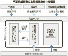 転載元: それでも動く名無し 2025/11/27(木) 22:16:47.47 ID:TYyviPbH0 成田空港(千葉県)近くの開発用地への投資商品「みんなで大家さん成田」で、政府が100%出資する成田国際空港会社(NAA)は27日、開発事業を行う不動産会社「共生バンク」(東京都千代田区)との土地の賃貸借契約を更新せず、11月末で終えると発表した。共生バンクの資金面などが理由という。 【画像】土地投資「みんなで大家さん成田」分配金支払い遅れ 1千億円超集金 NAAが貸している土地は、共生バンクが千葉県成田市から開発許可を得た約45・6万平方メートルの約4割を占め、開発に一定の影響が出る可能性がある。共生バンクは27日の取材に「お答えできない」とした。 NAAの藤井直樹社長は27日に記者会見し、契約を終える理由について「(造成の)残工事の遂行能力があると確認できなかった。資金面が一つの要素で総合的に判断した」と述べた。26日に共生バンクに契約を終える方針を伝え、同社からは「承知しました。共生バンクとしても対応を検討する」との返答があったという。再契約の可能性については「今後の状況をみて判断する」と述べた。 2: それでも動く名無し 2025/11/27(木) 22:17:02.47 ID:TYyviPbH0 不動産特定共同事業法の投資商品「みんなで大家さん成田」は、共生バンクの子会社「みんなで大家さん販売」が売り、大阪市にあるグループ会社「都市綜研インベストファンド」(ファンド社)が運用する。 共生バンクによると、資金調達は2020年11月に始め、想定年利回り7%をうたって昨年9月時点で約1580億円を集めた。今年7月31日以降の分配金の支払いが止まっている。 3: それでも動く名無し 2025/11/27(木) 22:19:09.20 ID:ndqEz6s00 明確に駄目…