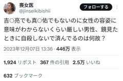 【悲報】女子「イケメンでもないのに女性の容姿に厳しい男性、鏡見たとき死なないのはなぜ?」