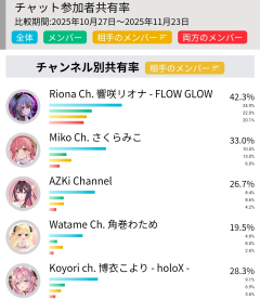引用元: 575: Vtuberまとめ2025/11/28(金) 06:30:58.53 リオナのラムベガスを見ていたリスナー 1位 35P 2位 開拓者 3位 わためいと 598: Vtuberまとめ2025/11/28(金) 06:32:03.24 >>575 35Pめっちゃリオナ好きで草 601: Vtuberまとめ2025/11/28(金) 06:32:34.51 >>575 やはりリスナーは配信者に似るな 605: Vtuberまとめ2025/11/28(金) 06:32:42.97 >>575 みこち不在の35Pとわためいと副窓で盛られてるだけだろうな 623: Vtuberまとめ2025/11/28(金) 06:33:35.79 >>575 あんなに同接出てるのにメンバー率たけえなリオナ もしかしてメンシ相当増えてるのか? 625: Vtuberまとめ2025/11/28(金) 06:33:52.11 >>605 10/27からのデータって書いてあるけど 626: Vtuberまとめ2025/11/28(金) 06:34:05.68 >>623 今メンシ7000ぐらいあるから 654: Vtuberまとめ2025/11/28(金) 06:36:04.65 >>575 ぺこらいなくて草 657: Vtuberまとめ2025/11/28(金) 06:36:15.49 >>575 35Pはフッ軽だから暇な時や誘導されると1万人くらい大移動するからな 675: Vtuberまとめ2025/11/28(金) 06:37:30.19 >>626 すげぇ😳 グッズもリアル店舗で完売してて全く手に入らないって聞いたし、 カバーは今のうちにもっと推してけ…